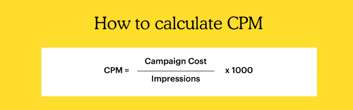 The calculation of CPM is straightforward: divide the advertising expenditure by the number of impressions and then multiply by 1,000. The formula represents as: CPM = (Ad spend / impressions) * 1,000