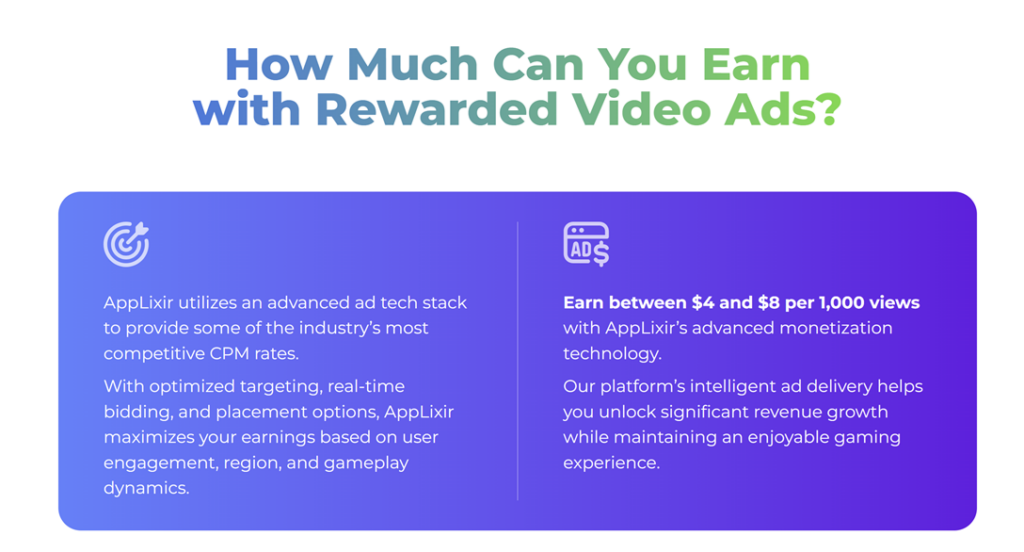 Finally, rewarded video ads lead to increased revenue compared to other ad formats. Because players actively engage with these ads and are more likely to complete them, the earnings per impression tend to be higher. Advertisers are willing to pay a premium for high-engagement placements, which often results in better revenue for developers compared to standard banner or interstitial ads.